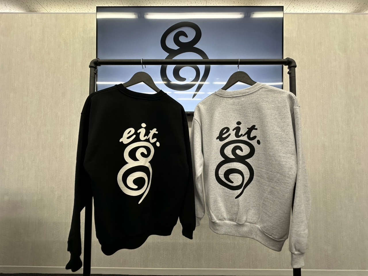 eit.8 Sweatshirtsは、シンプルながらもスタイルのアクセントとなる魅力的なスウェットです。特徴的なeit.8 ロゴが、前面の胸元と背面に大きくプリントされており、存在感を演出します。柔らかな素材感と快適な着心地で、リラックスしたい日やカジュアルなお出かけに大変お勧めの一着です!